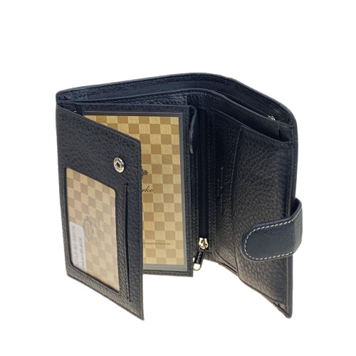 Многофункциональный мужской кошелёк-органайзер. Выполнен из натуральной кожи, вмещает деньги, пластиковые карты и различные документы. Кошелёк закрывается на горт с кнопкой. Внутри два отделения под купюры с потайным карманом на молнии. На правом развороте окарман на магнитной кнопке для мелочи. На левом развороте открытый кармана, карман на молнии , 3 открытых кармана с пластиковым окном и 10 отсеков для пластиковых карт.