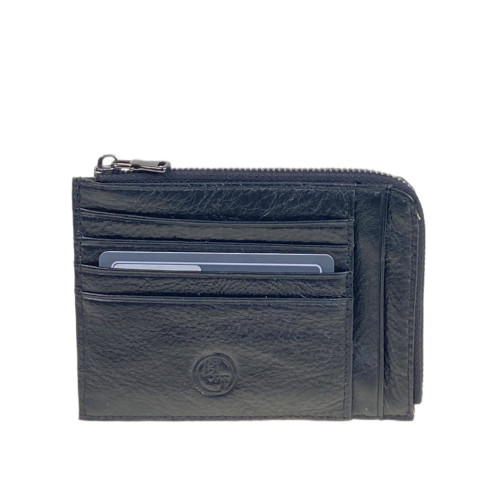 Простой и удобный картхолдер из натуральной кожи. Имеет горизонтальные прорези с 12-ю отсеками для пластиковых карт. Сверху есть карман на молнии.