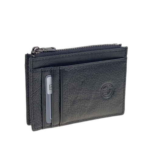 Простой и удобный картхолдер из натуральной кожи. Имеет горизонтальные прорези с 6-ю отсеками для пластиковых карт. Сверху есть карман на молнии.