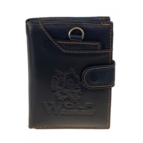 Многофункциональный мужской кошелёк-органайзер. Выполнен из натуральной кожи, вмещает деньги, пластиковые карты и различные документы. Кошелёк закрывается на горт с кнопкой. Внутри полноразмерное отделение под купюры с потайным карманом на молнии . На левом развороте отдел под мелочь на кнопке и четыре отсека для пластиковых карт. По середине обложка для автодокументов, внутри пластиковый файл для водительского удостоверения, 4 файла для СРТС и сложенный файл формата A5. На правом развороте отдел под паспорт.