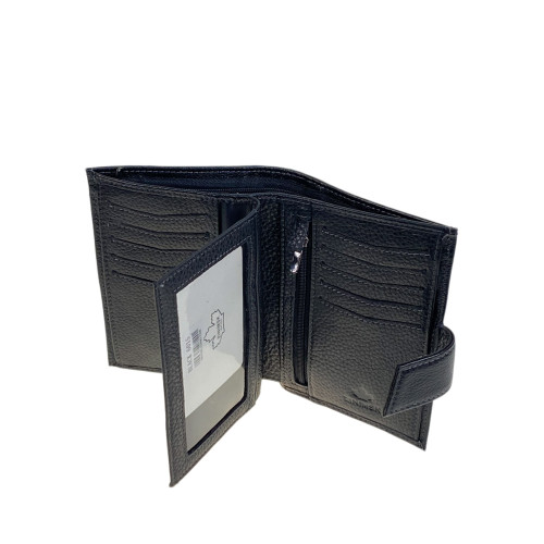 Многофункциональный мужской кошелёк-органайзер. Выполнен из натуральной кожи, вмещает деньги, пластиковые карты и различные документы. Кошелёк закрывается на горт с кнопкой. Внутри отделение под купюры с потайным карманом на молнии. На левом развороте 5 отсеков для пластиковых карт и открытое отделение. На правом развороте два открытых кармана, карман на молнии и 5 отсеков для пластиковых карт .
