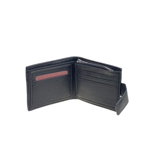 Простой и удобный мужской кошелёк из качественной искусственной кожи. Имеет отделение под купюры, отделение на молнии, 6 отсеков для пластиковых карт, закрывается на грот с магнитной кнопкой.