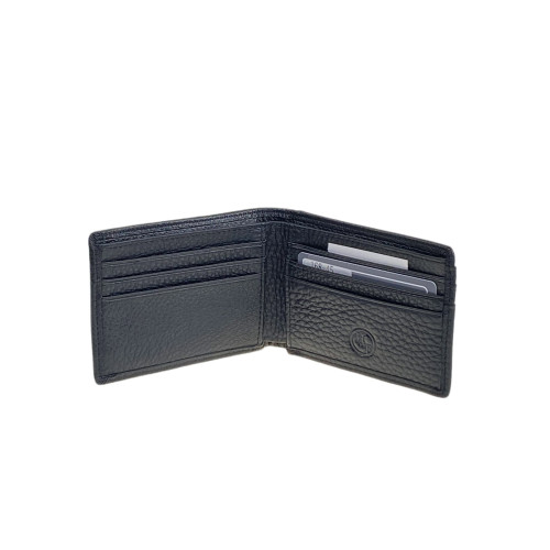Мужской кошелёк из натуральной кожи. Закрывается на скрытую магнитную кнопку. Внутри одно отделение под купюры, 6 отсеков для карт и два открытых отделения на развороте.