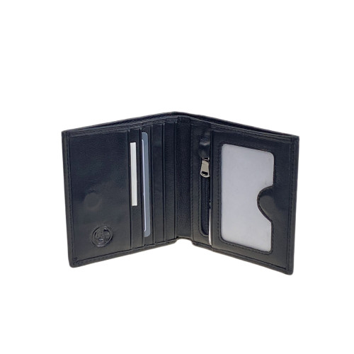 Мужской кошелёк из натуральной кожи. Закрывается на скрытую магнитную кнопку. Внутри одно отделениепод купюры, отделение на молнии, 4 отсека для карт.