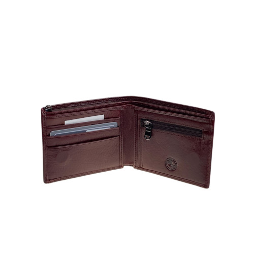 Мужской кошелёк из натуральной кожи. Закрывается на скрытую магнитную кнопку. Внутри два отделения под купюры, отделение на молнии, 3 отсека для карт, отделение для мелочи.