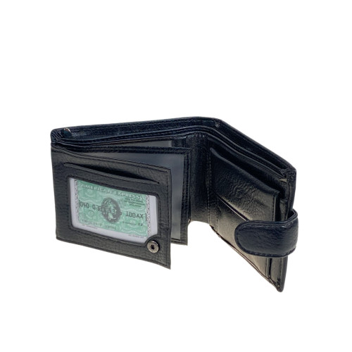Мужское портмоне выполнен из натуральной кожи, вмещает деньги, пластиковые карты. Закрывается на грот с магнитной кнопкой, внутри два отделения под купюры, потайной карман на молнии, 3 отсекf для пластиковых карт, отделение для мелочи на магнитной кнопке, и 3 отсека с пластиковым окном.