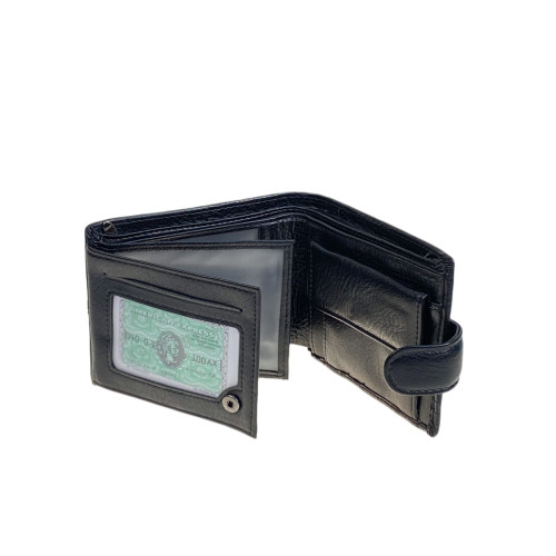 Мужское портмоне выполнен из натуральной кожи, вмещает деньги, пластиковые карты. Закрывается на грот с магнитной кнопкой, внутри два отделения под купюры, потайной карман на молнии, 3 отсекf для пластиковых карт, отделение для мелочи на магнитной кнопке, и 3 отсека с пластиковым окном.