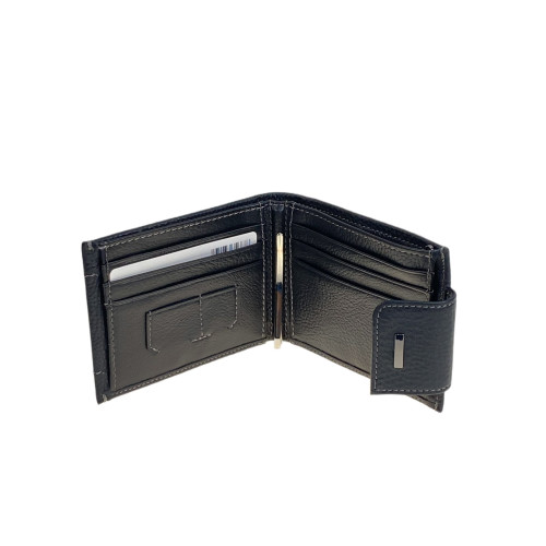 Мужское портмоне выполнен из натуральной кожи, вмещает деньги, пластиковые карты. Закрывается на грот с магнитной кнопкой, внутри одно отделение под купюры, потайной карман на молнии, 6 отсеков для пластиковых карт, и зажим для денег. Снаружи, на задней стенке карман на молнии.