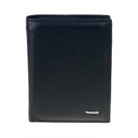 Мужское портмоне из натуральной кожи. Внутри два отделения под купюры и потайной карман на молнии. На левом развороте 3 отсека для пластиковых карт и два отсека с пластиковым окном. На правом развороте карман на магнитной кнопке.