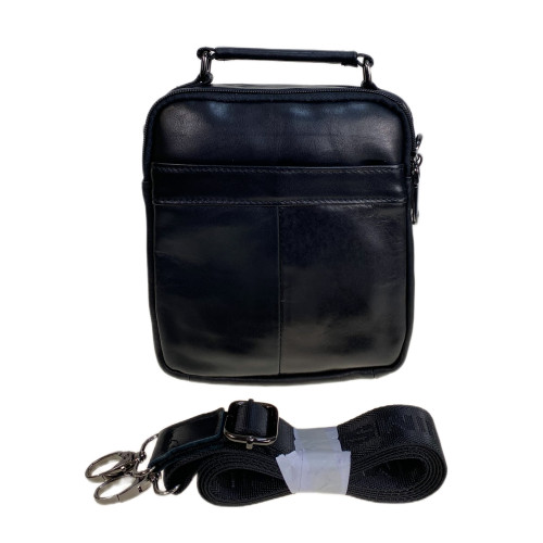 Функциональная мужская сумка из натуральной кожи. Основное отделение застегивается на молнию. Снаружи, на передней стенке под клапаном накладной карман на молнии. На задней стенке карман на молнии с карманом на магнитной кнопке. В комплекте текстильный плечевой ремень.
