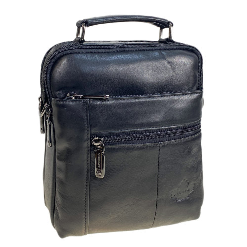 Функциональная мужская сумка из натуральной кожи. Сумка имеет два отделения, каждое закрывается на молнию. Снаружи, на передней стенке два кармана на молнии. На задней стенке карман на магнитной кнопке. В комплекте текстильный плечевой ремень и ручка.