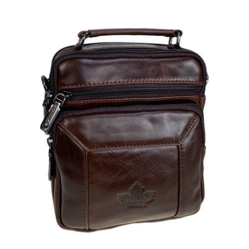 Функциональная мужская сумка из натуральной кожи. Основное отделение застегивается на молнию, внутри карман на молнии. Снаружи, на передней стенке прорезной карман на молнии и накладной карман на молнии. На задней стенке карман на молнии с карманом на магнитной кнопке. В комплекте текстильный плечевой ремень.