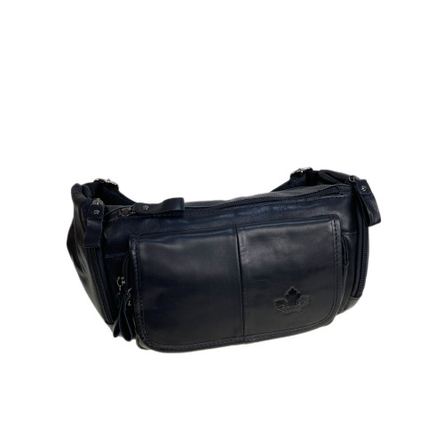 Сумка на пояс из натуральной кожи удобно носится на поясе, через туловище или через плечо, является практичной, компактной и легкой, поэтому удобна для повседневной носки, спорта или путешествий. Основное отделение застегивается на молнию, внутри карман на молнии. Снаружи, на передней стенке под клапаном два кармана на молнии. На задней стенке карман на молнии. В комплекте текстильный плечевой ремень.