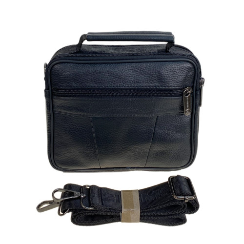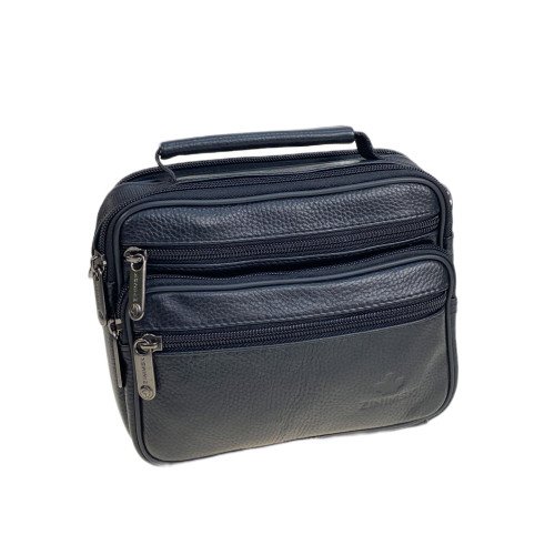 Функциональная мужская сумка из натуральной кожи. Сумка имеет два отделения, каждое застегивается на молнию. Снаружи, на передней стенке три кармана на молнии. На задней стенке карман на молнии. В комплекте текстильный плечевой ремень.