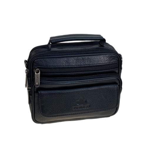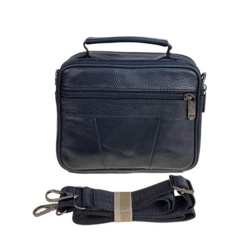 Функциональная мужская сумка из натуральной кожи. Сумка имеет два отделения, каждое застегивается на молнию. Снаружи, на передней стенке два кармана на молнии и карман с клапаном на магнитной кнопке. На задней стенке карман на молнии. В комплекте текстильный плечевой ремень.