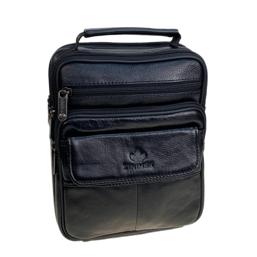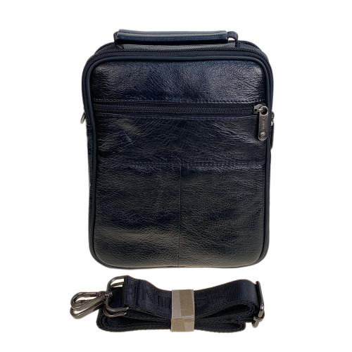 Функциональная мужская сумка из натуральной кожи. Сумка имеет два отделения, застегивается на молнию. Снаружи, на передней стенке прорезной карман на молнии, накладной карман на молнии с отделением на клапане. На задней стенке карман на молнии. В комплекте текстильный плечевой ремень.