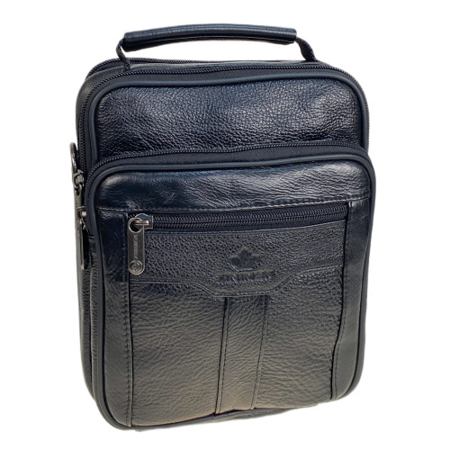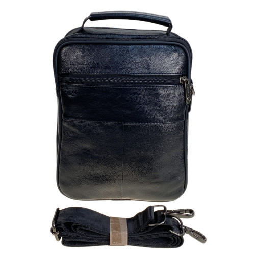 Функциональная мужская сумка из натуральной кожи. Сумка имеет два отделения, застегивается на молнию. Снаружи, на передней стенке накладной карман на молнии с отделением на молнии. На задней стенке карман на молнии. В комплекте текстильный плечевой ремень.