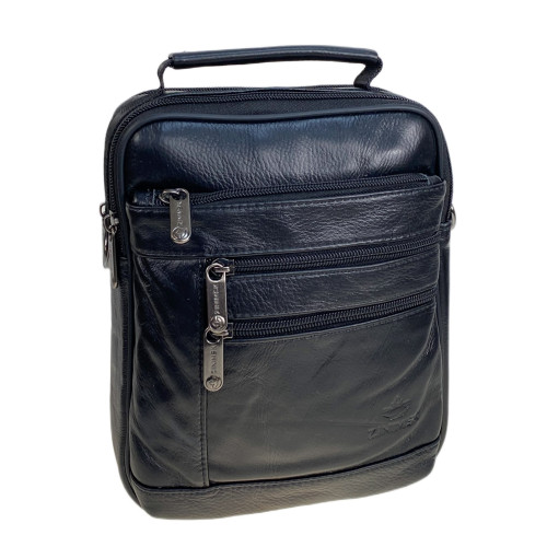 Функциональная мужская сумка из натуральной кожи. Сумка имеет два отделения, застегивается на молнию. Снаружи, на передней стенке накладной карман на молнии с двумя прорезными кармана на молнии. На задней стенке карман на молнии. В комплекте текстильный плечевой ремень.