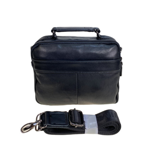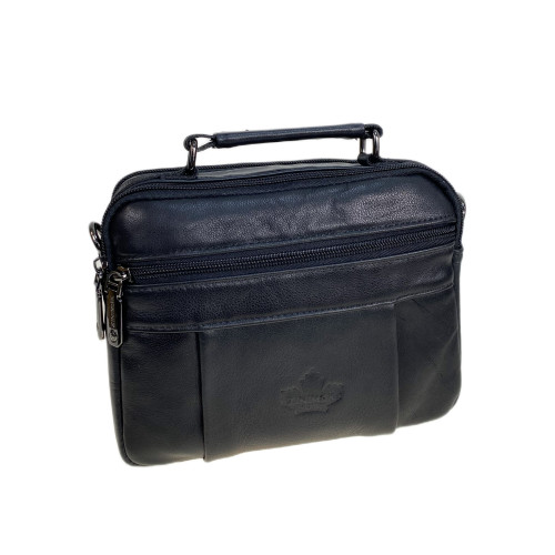Функциональная мужская сумка из натуральной кожи. Сумка имеет два отделения, каждое застегивается на молнию. Снаружи, на передней стенке карман на магнитной кнопке. На задней стенке карман на молнии. В комплекте текстильный плечевой ремень.