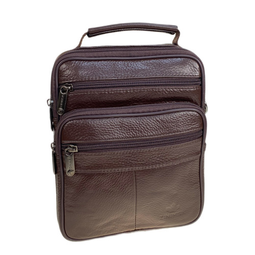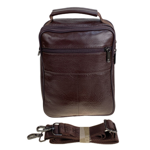 Функциональная мужская сумка из натуральной кожи. Сумка имеет два отделения, застегивается на молнию. Снаружи, на передней стенке прорезной карман на молнии, накладной карман на молнии с отделением на молнии. На задней стенке карман на молнии. В комплекте текстильный плечевой ремень.