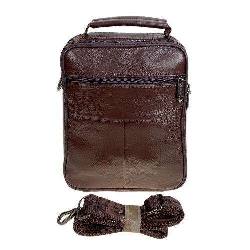 Функциональная мужская сумка из натуральной кожи. Сумка имеет два отделения, застегивается на молнию. Снаружи, на передней стенке прорезной карман на молнии, накладной карман на молнии с отделением на клапане. На задней стенке карман на молнии. В комплекте текстильный плечевой ремень.