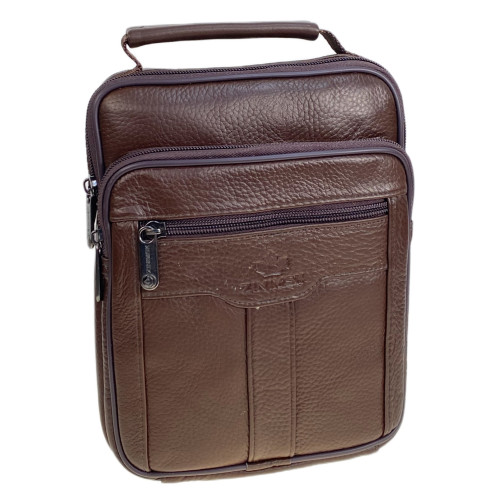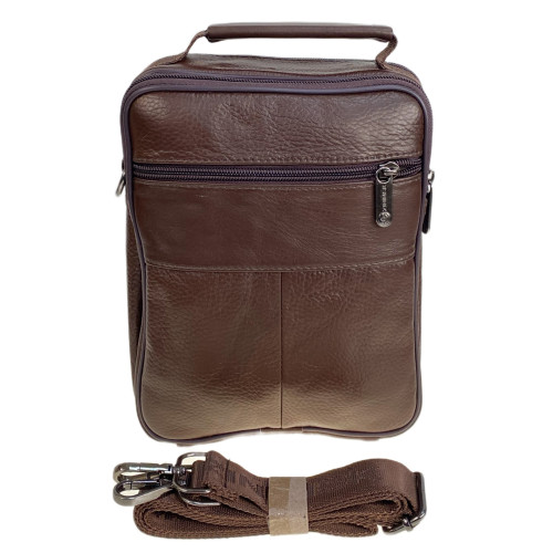Функциональная мужская сумка из натуральной кожи. Сумка имеет два отделения, застегивается на молнию. Снаружи, на передней стенке накладной карман на молнии с отделением на молнии. На задней стенке карман на молнии. В комплекте текстильный плечевой ремень.