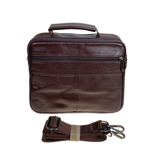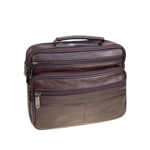 Функциональная мужская сумка из натуральной кожи. Сумка имеет два отделения, застегивается на молнию. Снаружи, на передней стенке накладной карман на молнии с двумя прорезными кармана на молнии. На задней стенке карман на молнии. В комплекте текстильный плечевой ремень.