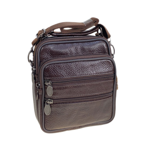 Сумка мужская из натуральной кожи удобно носится через туловище или через плечо, является практичной, компактной и легкой, поэтому удобна для повседневной носки. Имеет два отделения, каждое застегивается на молнию. Снаружи, на передней стенке три кармана на молнии. На задней стенке карман на молнии. В комплекте текстильный плечевой ремень и ручка.