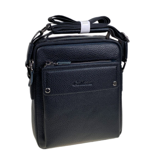 Функциональная мужская сумка из искусственной кожи. Подойдёт на каждый день. Имеет два отделения, каждое закрывается на молнию, внутри карман на молнии и открытый карман. На фронтальной стенке карман на молнии. Снаружи, на задней стенке карман на молнии. В комплекте широкий текстильный ремешок и ручка.