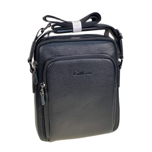 Функциональная мужская сумка из искусственной кожи. Подойдёт на каждый день. Имеет два отделения, каждое закрывается на молнию, внутри карман на молнии и открытый карман. На фронтальной стенке карман на молнии. Снаружи, на задней стенке карман на молнии. В комплекте широкий текстильный ремешок и ручка.