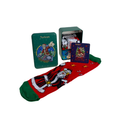 Подарочный набор мужских носков. В коробке 3 пары, принт новогодний. В наборе поздравительная открытка. Размер носков: 41-46./p>