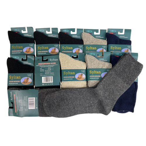 Набор тёплых мужских носков 12 пар в упаковке. Носки прекрасно облегают стопу, не вытягиваются и не садятся после стирки, хорошо впитывают влагу и обеспечивают комфорт на протяжение всего дня, практически не ощущаясь на ноге. Изготовлены из высококачественного дышащего материала. В составе содержится 70% шерсть, 20% бамбук, 5% полиамид, 5% эластан. Размер 41-46 см.