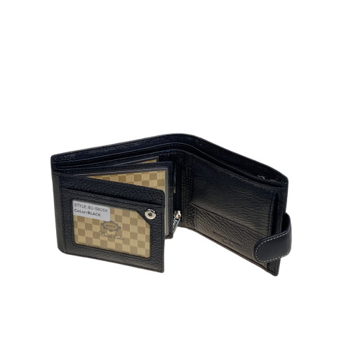 Мужское портмоне выполнен из натуральной кожи, вмещает деньги, пластиковые карты. Закрывается на грот с магнитной кнопкой, внутри два отделения под купюры, потайной карман на молнии, 3 отсека для пластиковых карт, отделение для мелочи на магнитной кнопке, и три отсека с пластиковым окном.