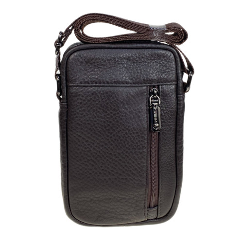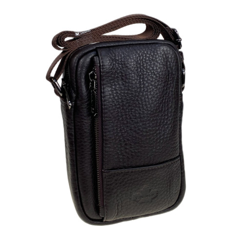 Функциональная мужская сумка из натуральной кожи. Основное отделение застегивается на молнию, внутри открытый карман. Снаружи, на передней стенке карман на молнии. На задней стенке карман на молнии. В комплекте текстильный плечевой ремень.