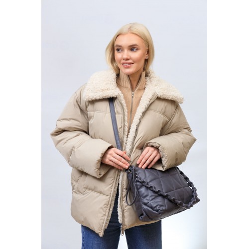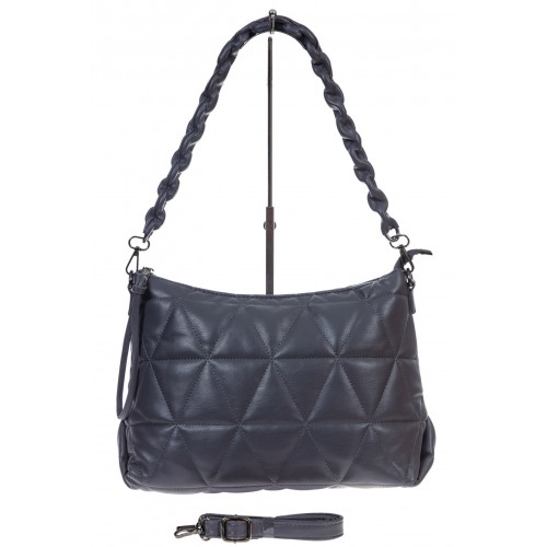 Женская сумка из мягкой искусственной кожи. В комплекте плечевой ремень, регулируется по длине, ручка сьемная. Сумка застёгивается на молнию, внутри два отделения с перегородкой на молнии, карман на молнии и два открытых кармана. Цвет сумки графит. Размер сумки L