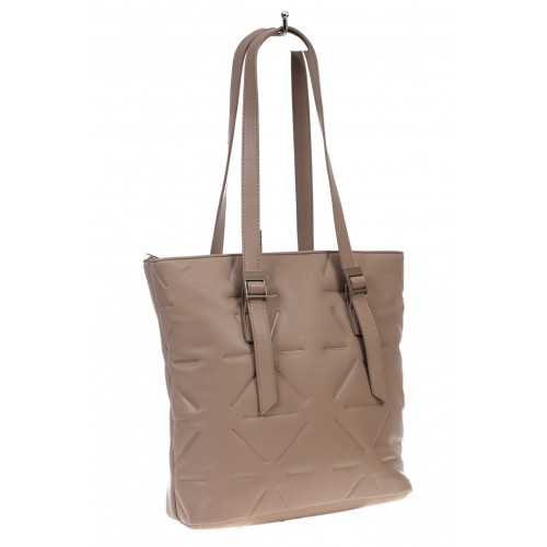 Вместительная женская сумка тоут из искусственной кожи. Длинные ручка регулируются по длине. В комплекте длинный плечевой ремень. Сумка застёгивается на молнию, внутри два отделения с перегородкой на молнии, карман на молнии. Снаружи, на задней стенке, карман на молнии. Цвет сумки молочный. Размер XL.