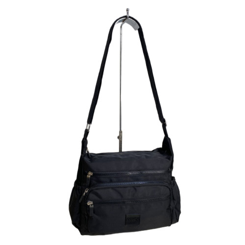 Удобная женская сумка из текстиля. Сумка имеет одно отделение, закрывается на молнию. Внутри дополнительный карман на молнии. Сумка имеет удлиненную ручку, регулируется по длине, удобно носить на плече и на локтевом сгибе. На фронтальной стенке три прорезных кармана на молнии. На задней стенке прорезной карман на молнии. По бокам с двух сторон открытые карманы.