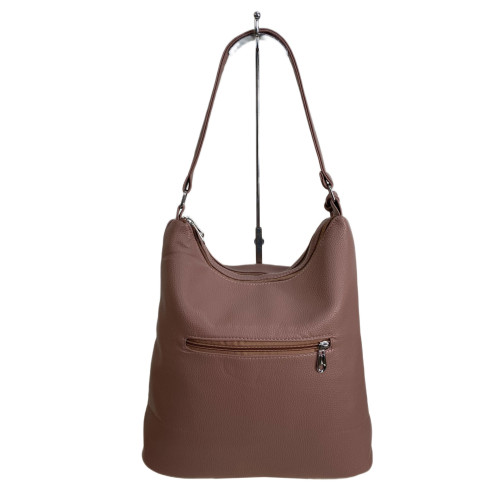 Элегантная и вместительная женская сумка из искусственной кожи. Сумка имеет два отделения каждое закрывается на молнию, внутри карман на молнии и открытый карман. Сумка имеет удобную ручку. На фронтальной стенке небольшой каран на магнитной кнопке. На задней стенке карман на молнии.