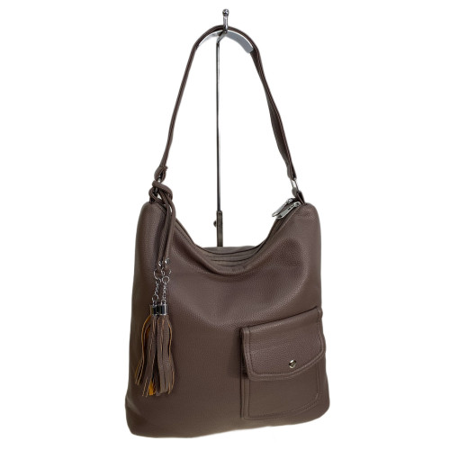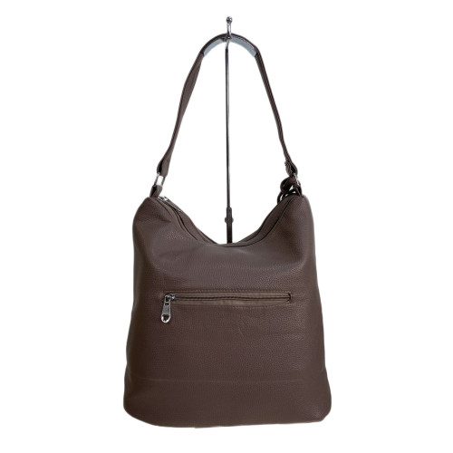 Элегантная и вместительная женская сумка из искусственной кожи. Сумка имеет два отделения каждое закрывается на молнию, внутри карман на молнии и открытый карман. Сумка имеет удобную ручку. На фронтальной стенке небольшой каран на магнитной кнопке. На задней стенке карман на молнии.