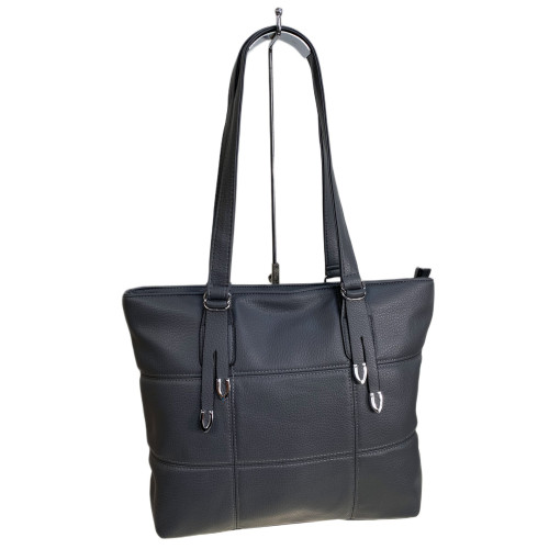 Элегантная и вместительная женская сумка из искусственной кожи. Сумка имеет два отделения, каждое закрывается на молнию, внутри карман на молнии и открытый карман. Сумка имеет удобные ручки. На задней стенке карман на молнии.