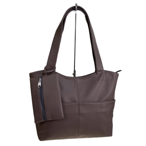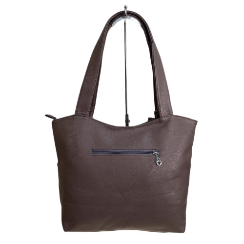 Элегантная и вместительная женская сумка из искусственной кожи. Закрывается на молнию, внутри два отделения, разделенных карманом на молнии, карман на молнии и открытый карман. Сумка имеет удобные ручки. На фронтальной стенке два кармана на магнитной кнопке. На задней стенке карман на молнии. В комплекте небольшая ключница.