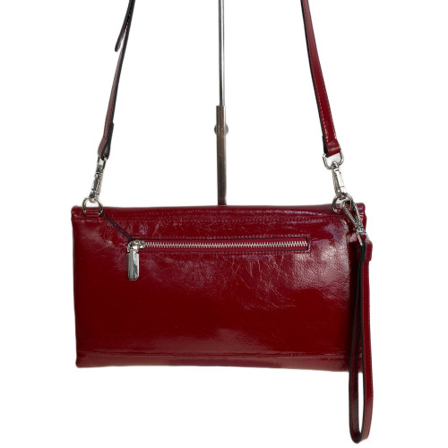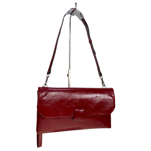 Компактная женская сумка из натуральной кожи. Сумка закрывается на клапан с магнитной кнопкой и молнию, внутри два отделения разделенных карманом на молнии, дополнительный карман на молнии и открытый карман. Снаружи, на задней стенке карман на молнии. В комплекте длинный плечевой ремень, регулируется по длине и ручка, позволяет носить сумку на запястье.