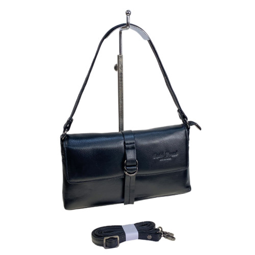 Компактная и стильная женская сумка из качественной натуральной кожи. Сумка закрывается на клапан со скрытой магнитной кнопкой и молнию, внутри два отделения разделенных карманом на молнии, дополнительный карман на молнии и открытый карман. На передней стенке карман на молнии. Снаружи на задней стенке карман на молнии. В комплекте удлиненная ручка и длинный плечевой ремень.