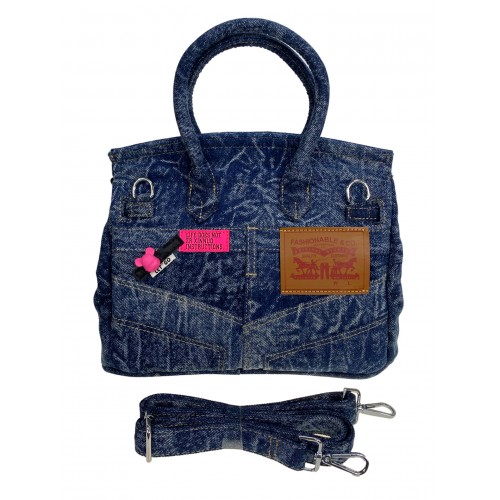 Стильная сумка-тоут из джинсовой ткани. Вместительна и элегантна, подходит как для повседневного использования, офиса, школы, учебы так и вечернего стиля. Закрывается на клапан с замком, внутри одно отделение, два открытых кармана и карман на молнии. Длинный ремешок позволит носить ее не только на плече или запястье, но и на плече. Сумка дополнена оригинальным брелком.