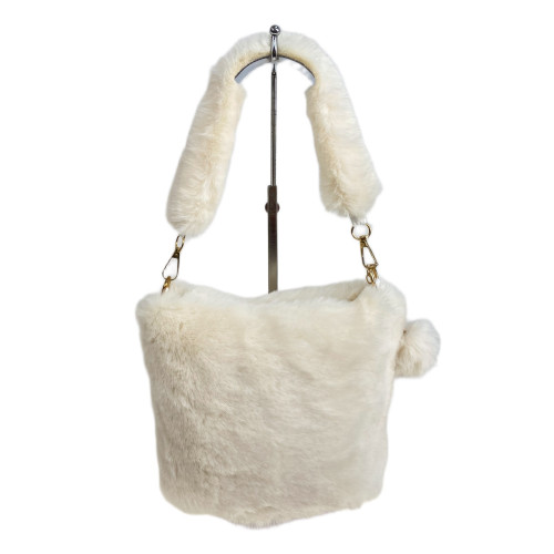 Элегантная и стильная женская сумка из искусственного меха. Закрывается на молнию, внутри одно основное отделение. Сумка имеет удобную ручки и меховой брелок.