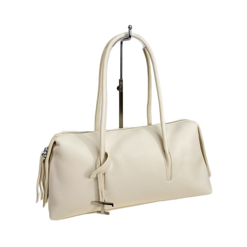 Элегантная женская сумка из искусственной кожи. Сумка закрывается на молнию, внутри одно основное отделение, дополнительный карман на молнии и открытый карман. В комплекте удлинненные ручки.