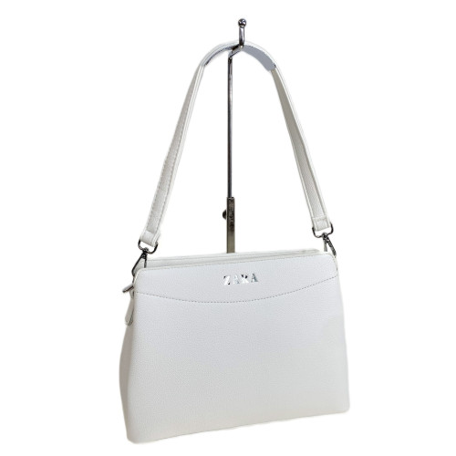 Компактная женская сумка из искусственной кожи. Сумка закрывается на молнию, внутри три отделения разделенных карманом на молнии, дополнительный карман на молнии. Снаружи на задней стенке карман на молнии. В комплекте удлиненная ручка и длинный плечевой ремень.