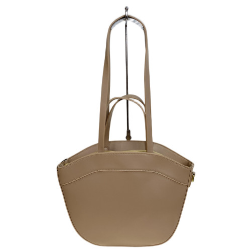 Стильная женская сумка из искусственной кожи. Закрывается на молнию, внутри одно основное отделение, дополнительный открытый карман и карман на молнии. В комплекте две пары ручек и длинный плечевой ремень.