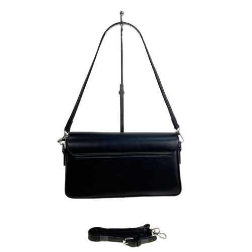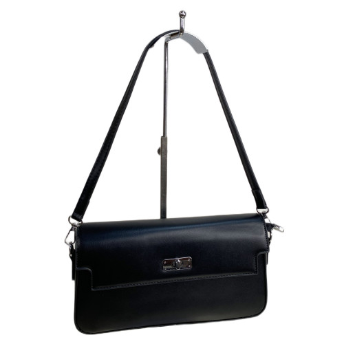 Компактная женская сумка из искусственной кожи. Сумка закрывается на клапан с повортным замком и молнию, внутри одно основное отделение и дополнительный карман на молнии. В комплекте удлиненная ручка и длинный плечевой ремень.