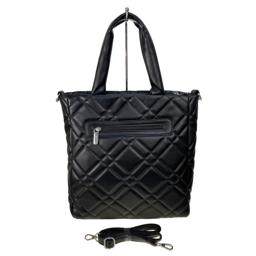 p> Элегантная и вместительная женская сумка из искусственной кожи. Сумку можно носить на сгибе локтя, в руке или на плече. Закрывается на молнию, внутри два отделения разделенных карманом на молнии, карман на молнии и два открытых кармана. В комплекте плечевой ремень, регулируется по длине. На дне сумки ножки.